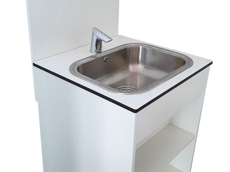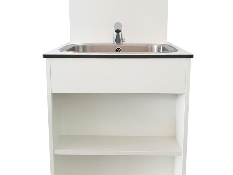 That is why we are pleased to present this hygiene station, which is produced in white, durable melamine, table top in compact laminate and with non-contact luminaire.