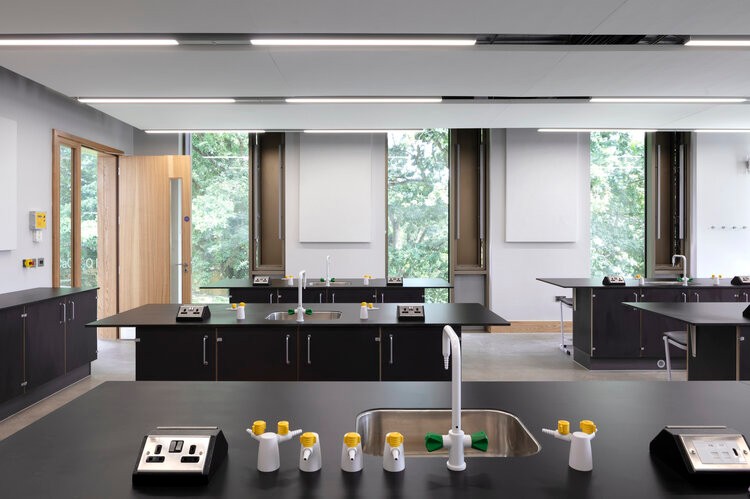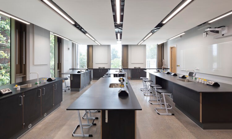ST Skoleinventar har leveret inventar til Science & Technology bygningen på den flotte skole, her blandt andet fysiklokale og lockers.