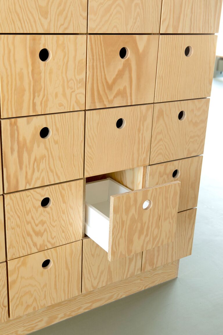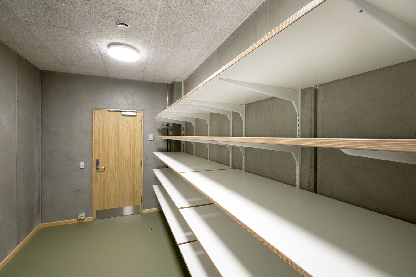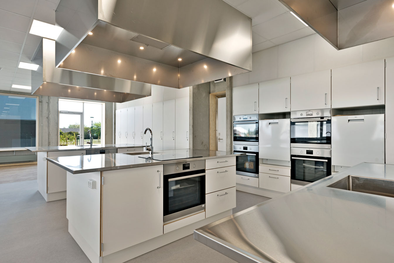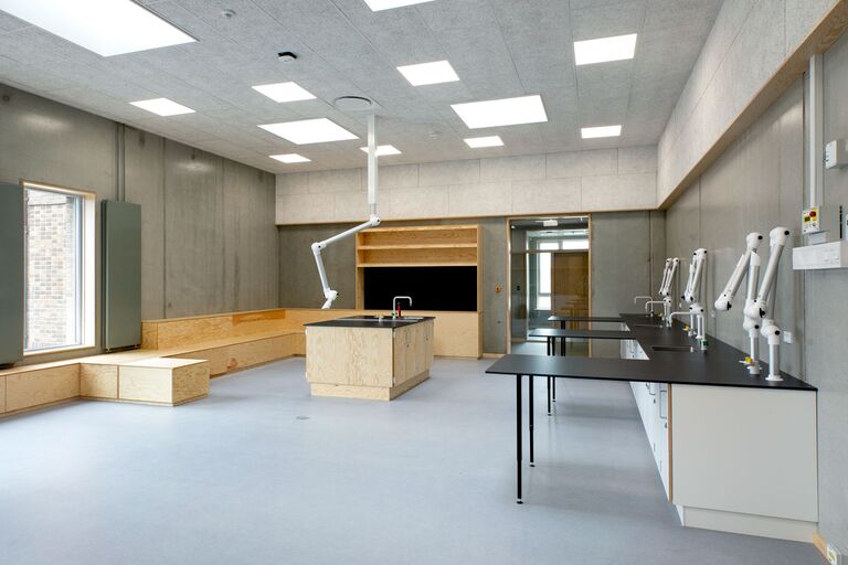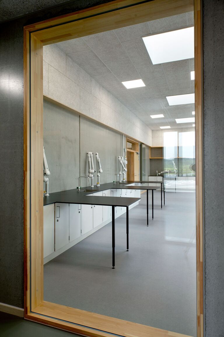 Jammerbugt Municipality has granted us permission to share the video below, where the school principal and the architect discuss their thoughts behind the construction of Jetsmark School. In the background, you can see some of the furniture solutions provided by ST Skoleinventar, including podiums and windowsills made of the currently popular plywood, which is beautifully highlighted here in contrast to the cold concrete. Check out more inspirational images from this impressive project below.