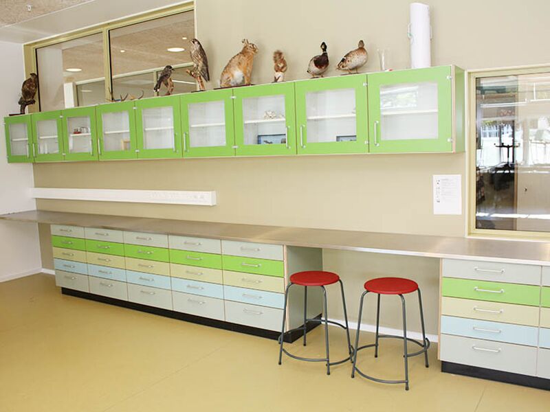 ST Skoleinventar has delivered furniture for the following specialised classrooms: Science, Food Technology, Textiles workshop, Craft and Design workshop, Staff rooms and lockers.