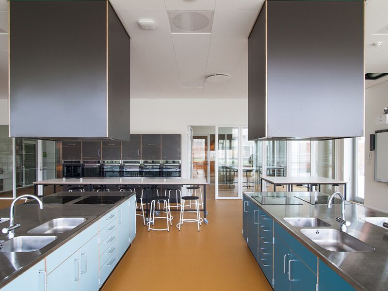 ST Skoleinventar has delivered furniture for the following specialised classrooms: Food Technology, Craft and Design workshop, Staff rooms, library, kitchenette and lockers.