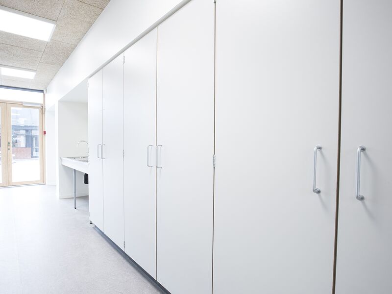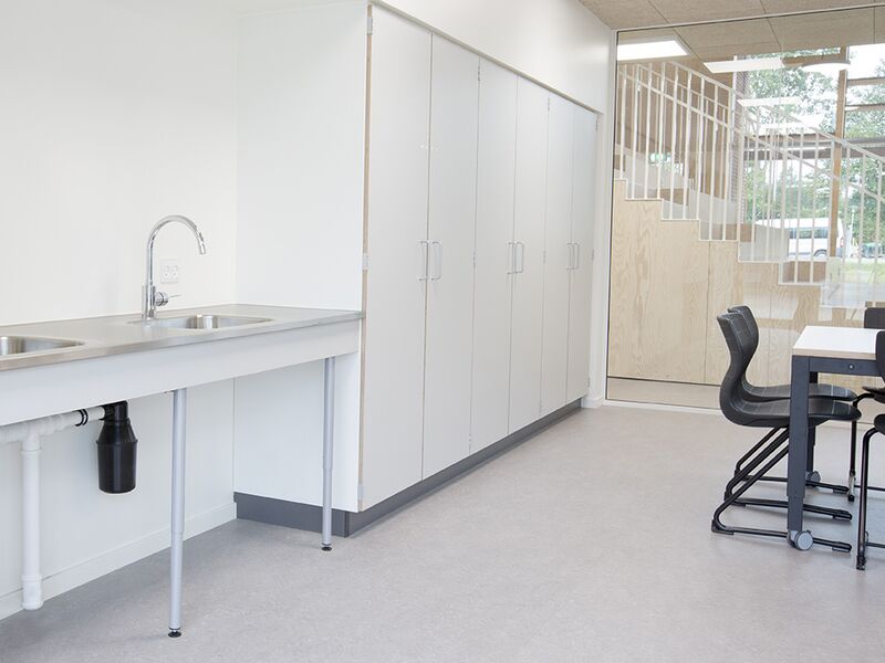 ST Skoleinventar has delivered furniture for the following specialist classrooms: Classrooms, wardrobes, staff kitchen, staff wardrobes, student lockers, library, kiosk.
