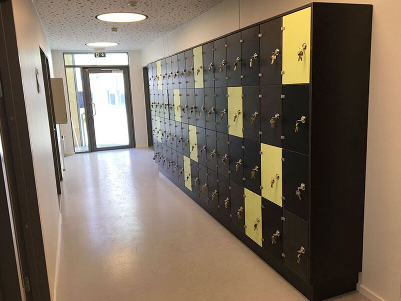 Campus Kujalleq, Julianehåb Check out the reception, wardrobes and cupboards in different colors that provide a beautiful furniture solution on Campus Kujalleq in Julianehåb. Year: 2018
