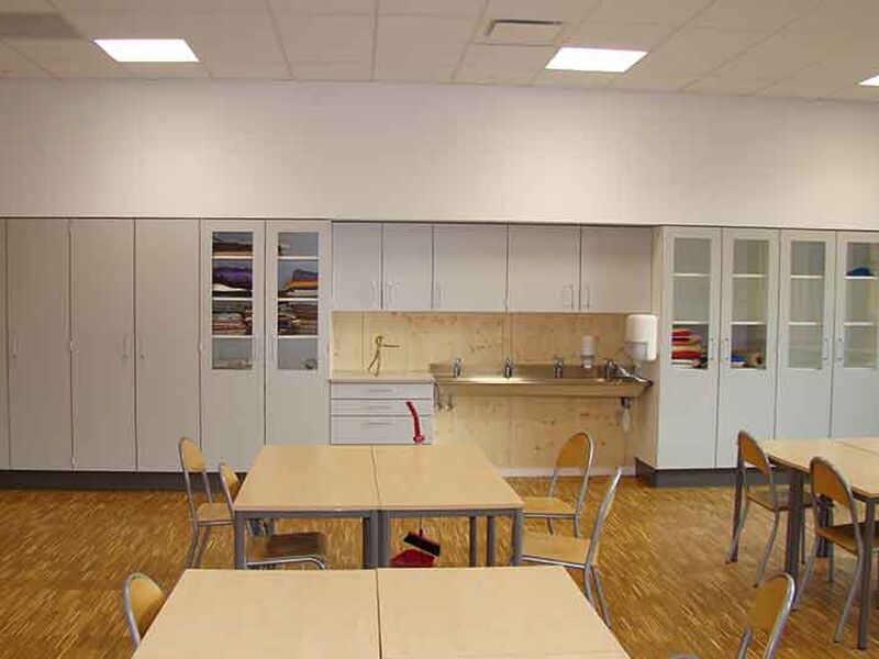 ST Skoleinventar has delivered furniture solutions for: Staff rooms, Wardrobes, Food Tech, Crafts, Visual arts, Science, Music, Environmental stations, Reception by the swimming pool and Common areas.