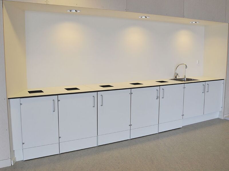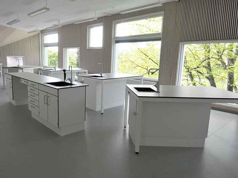 ST Skoleinventar has supplied furniture for the following subject rooms: Kitchen, Science and Wardrobe / Lockers with storage space for students.