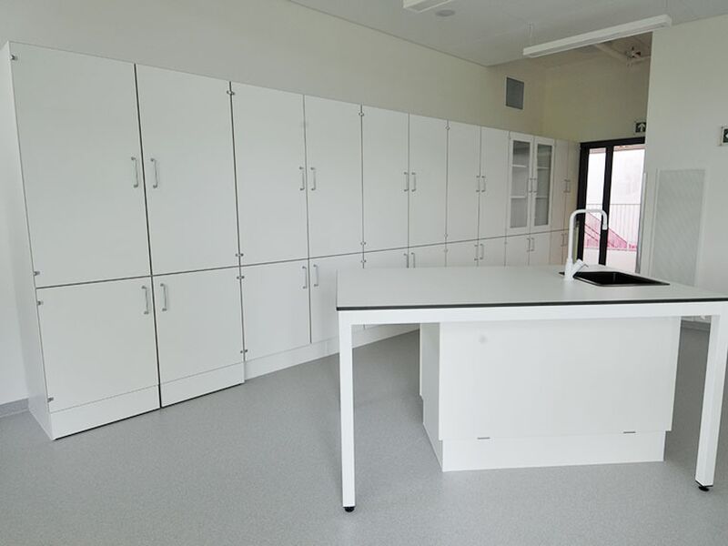 The science room is flexibly furnished with good storage options and a good overview of the room.