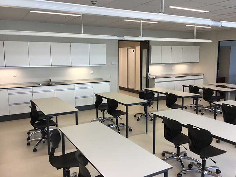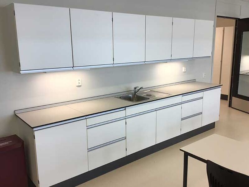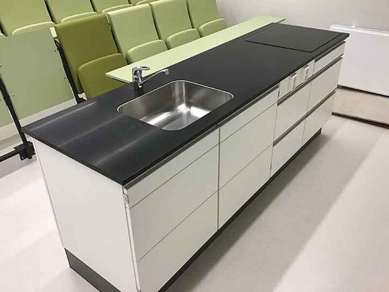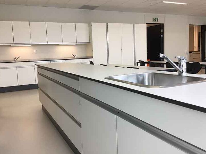 ST Skoleinventar has supplied furniture for the following subject rooms: Staff kitchen, Preparation room, Science, Chemistry lab and Biology.