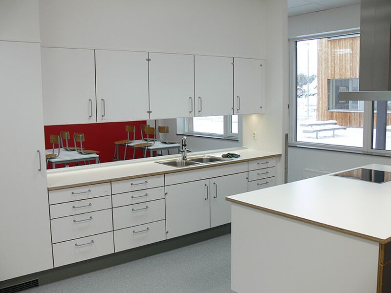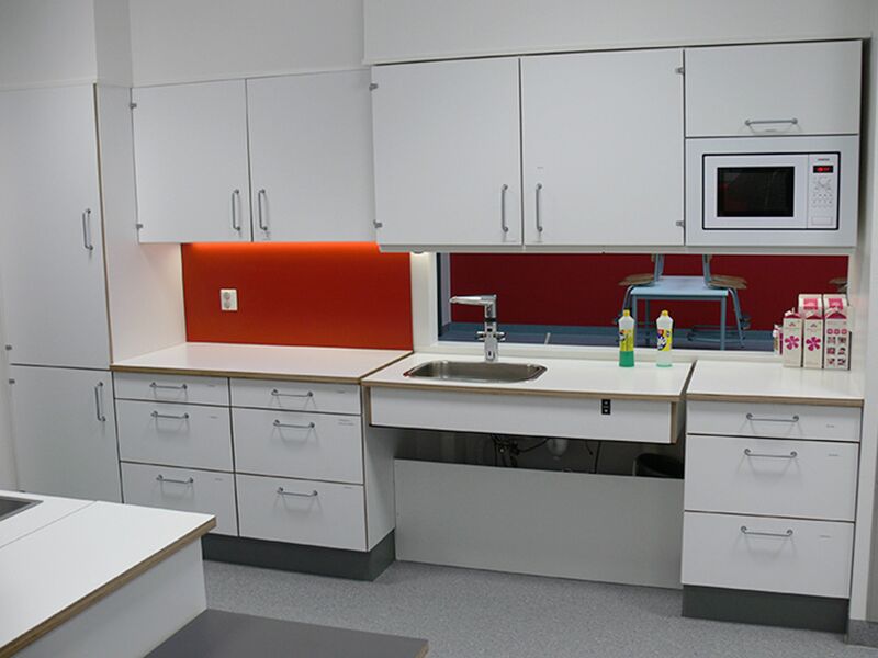 ST Skoleinventar has supplied furniture for the following specialist rooms: Food Technology, Crafts, Crafts & Design, Science, Wardrobes and SFO kitchen.