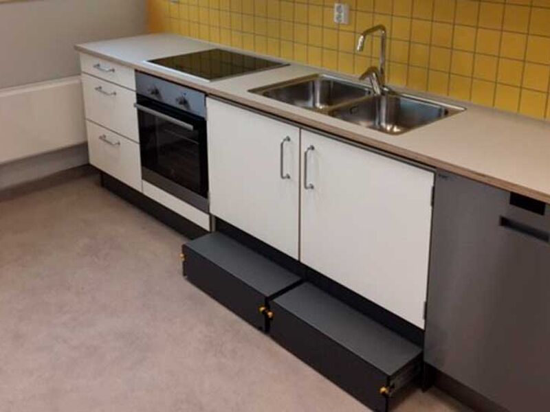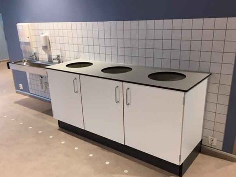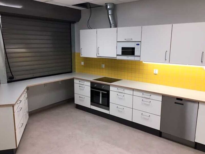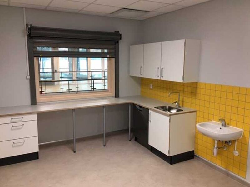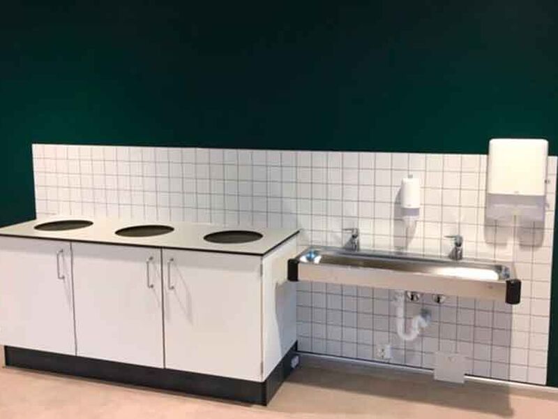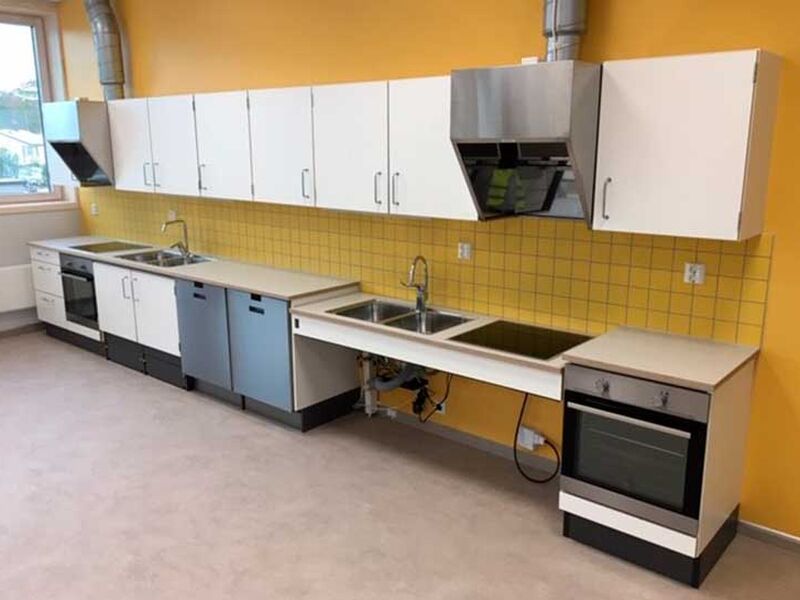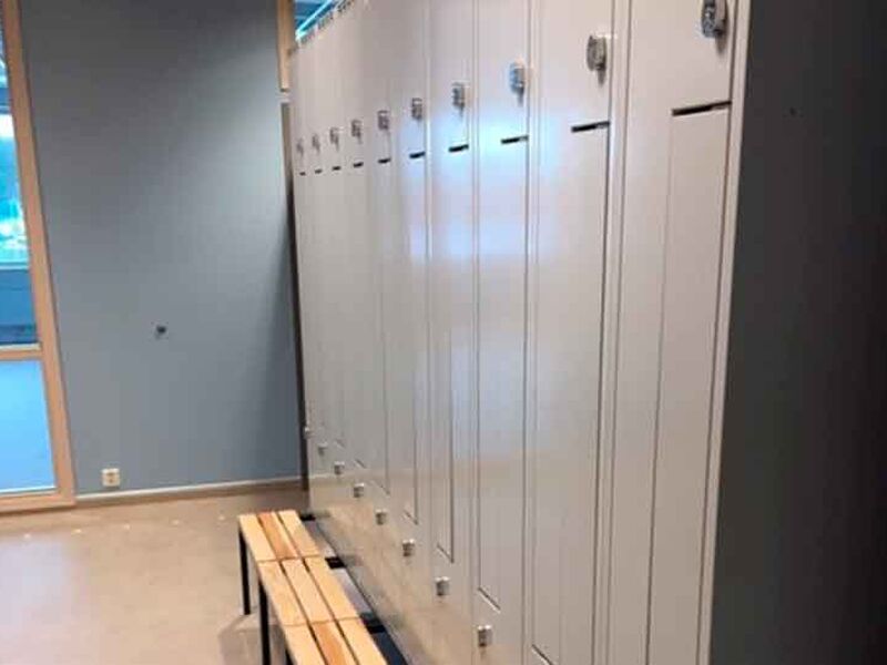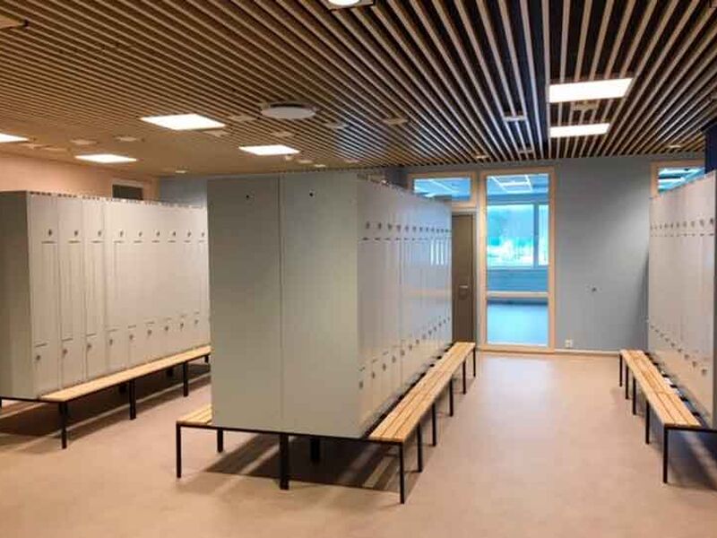 ST Skoleinventar has supplied furniture for the following premises: common areas, changing rooms, kiosk, food technology, changing rooms and classrooms