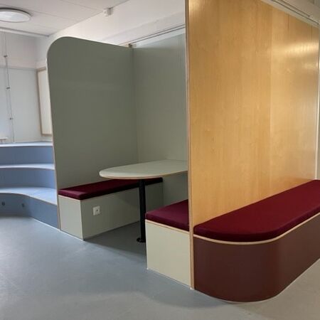 - Classrooms & subject rooms: We deliver furniture for all types of subject rooms: natural sciences, physics and chemistry, biology, craftsmanship & design, food preparation, visual arts, woodworking, makerspace with a focus on safety, ergonomics, and flexible use